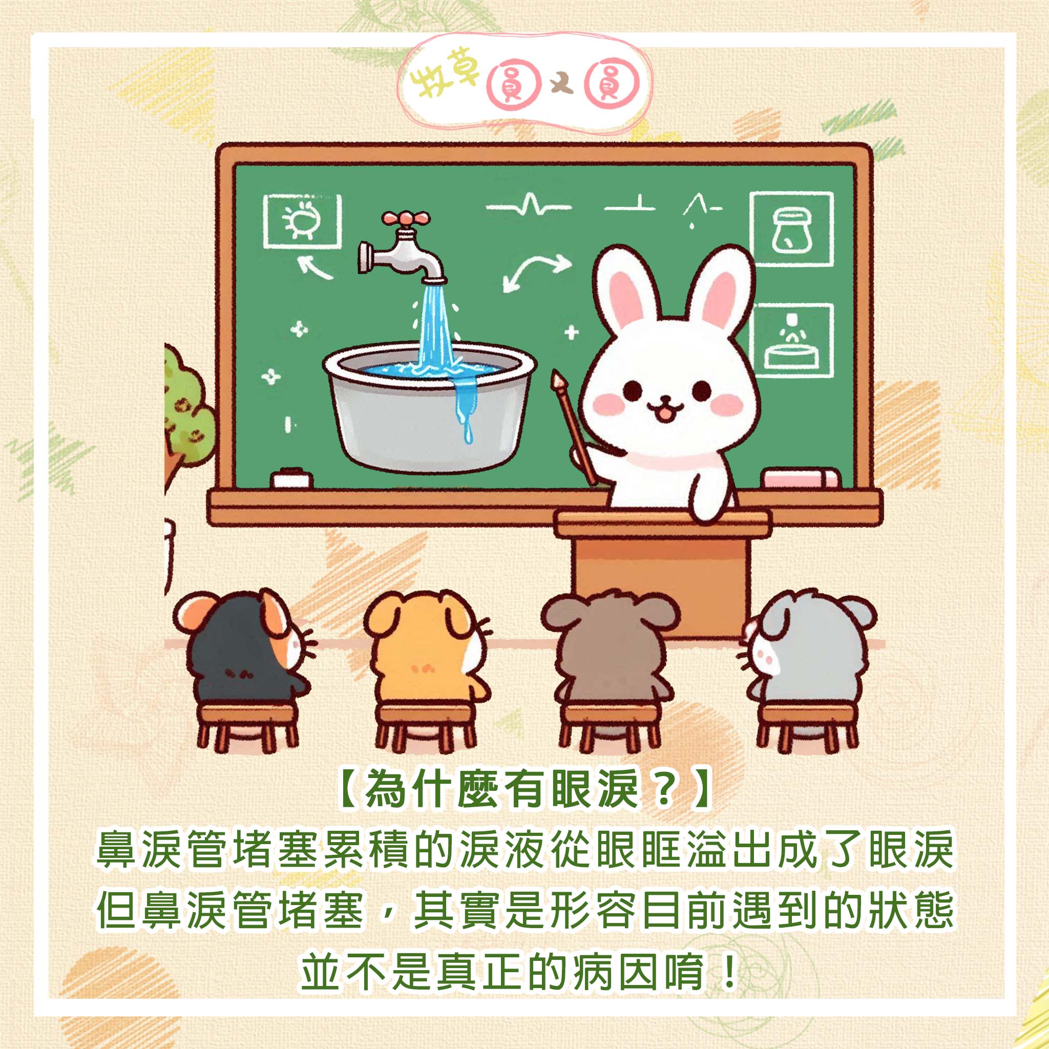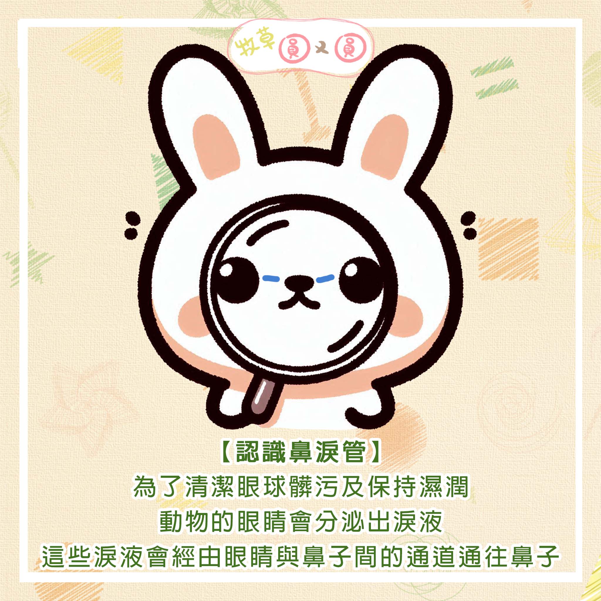 動物的眼睛會分泌出淚液,多餘的淚液會經由鼻淚管通往鼻子。