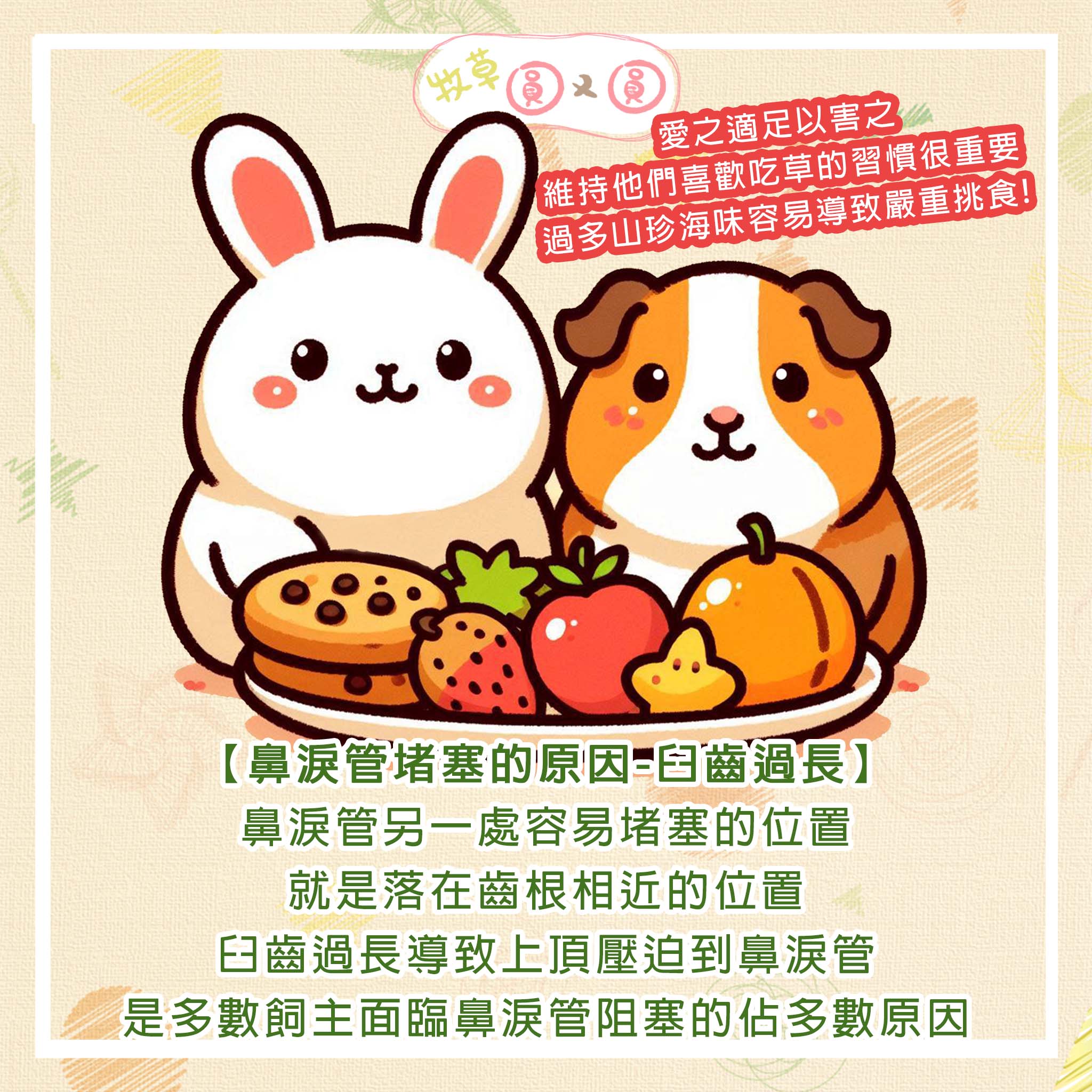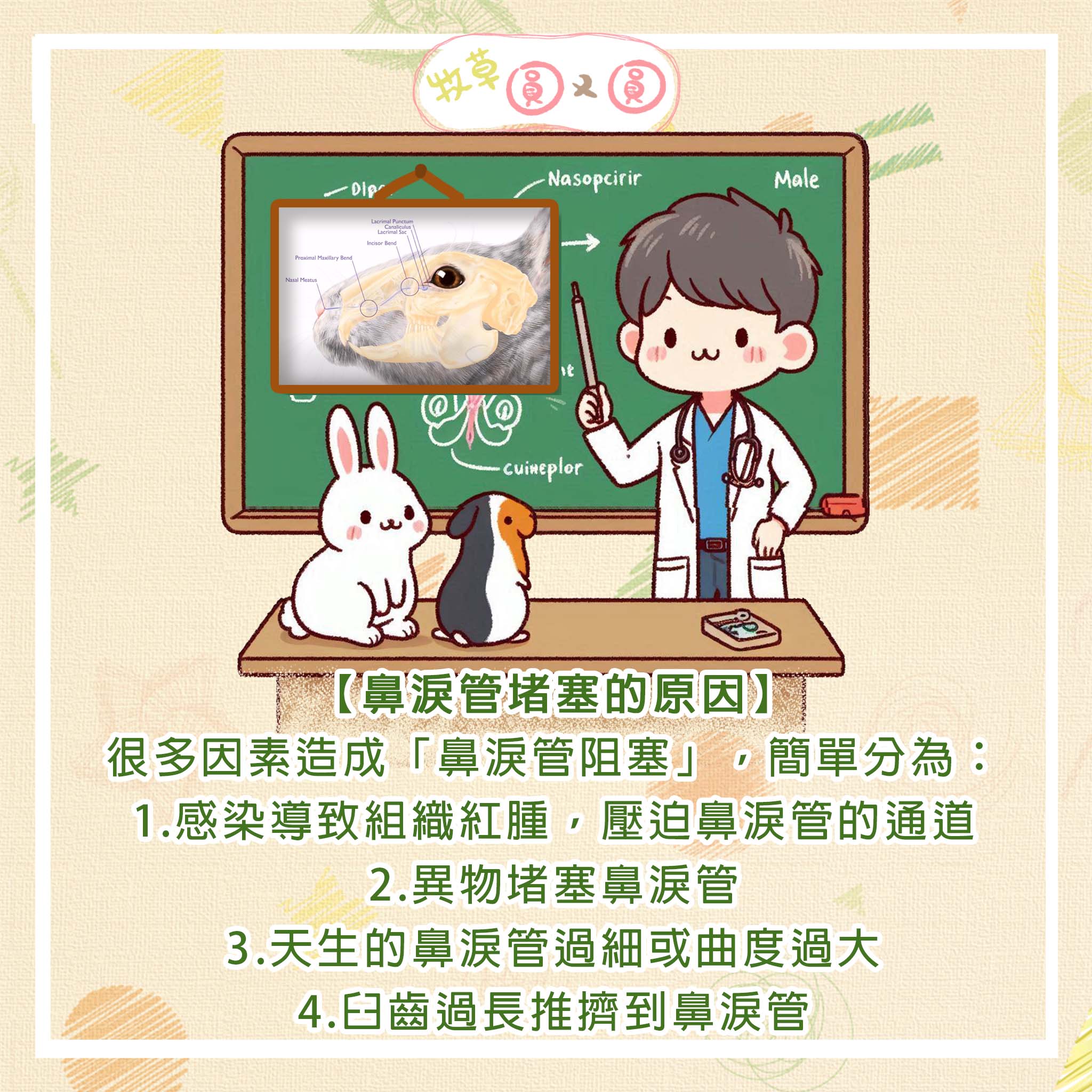 4.臼齒過長推擠到鼻淚管,使通道縮小。