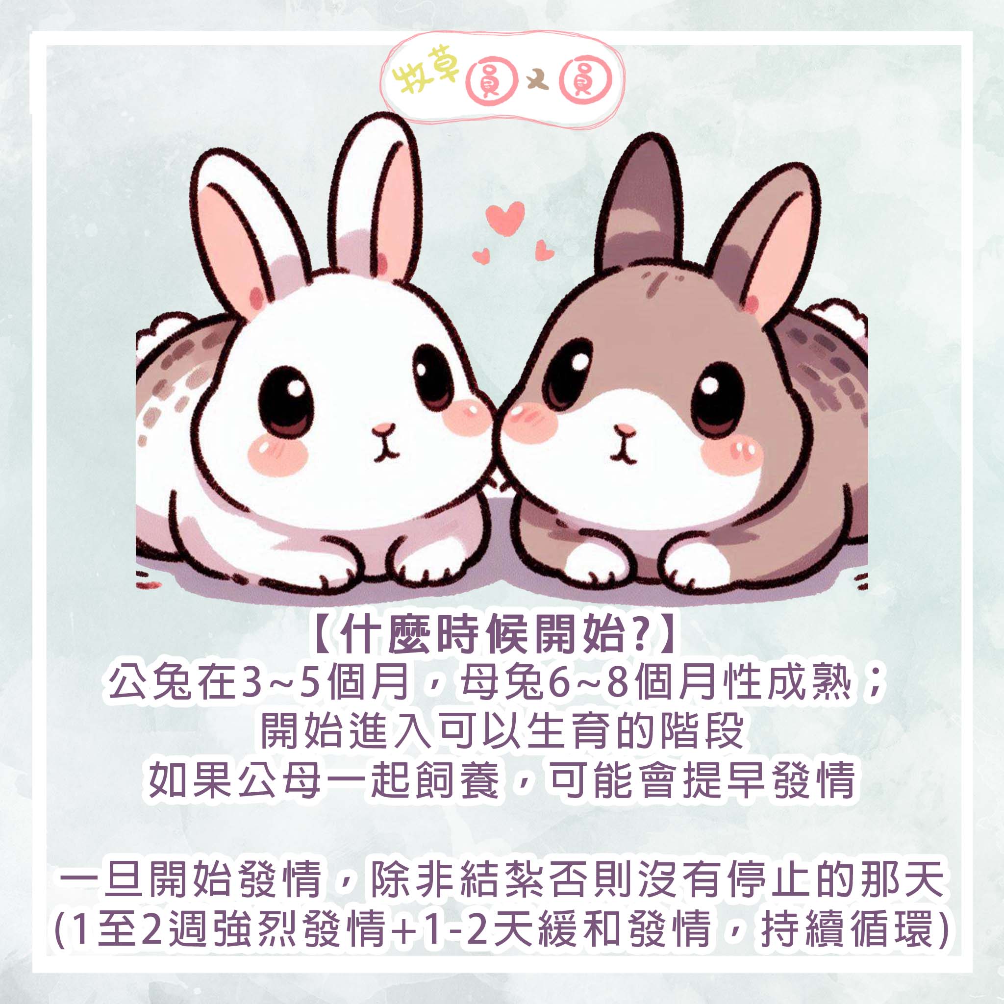 公兔在3~5個月,母兔6~8個月性成熟;開始進入可以生育的階段。