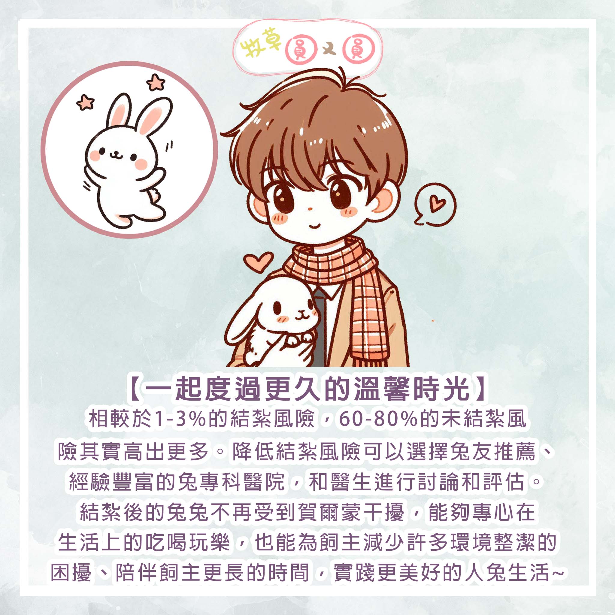 趁年輕幫兔兔進行節育手術,可以降低手術風險,體力恢復也會比較快!
