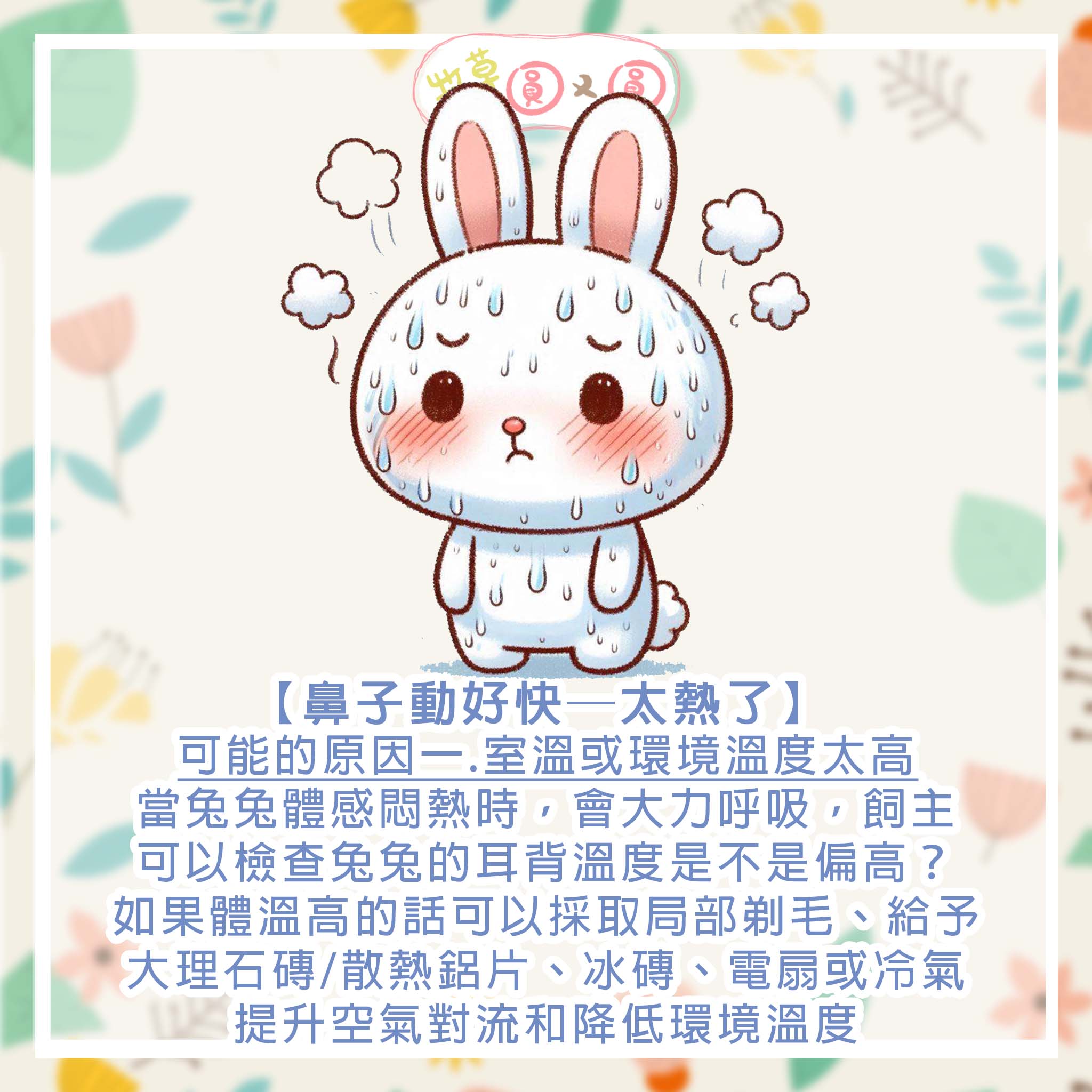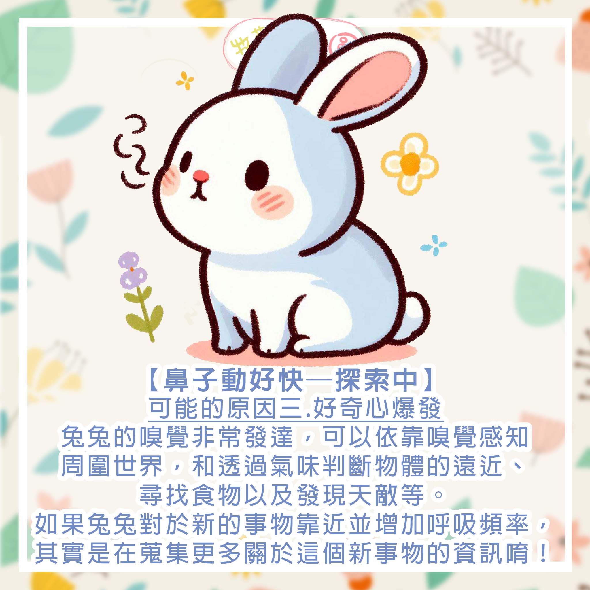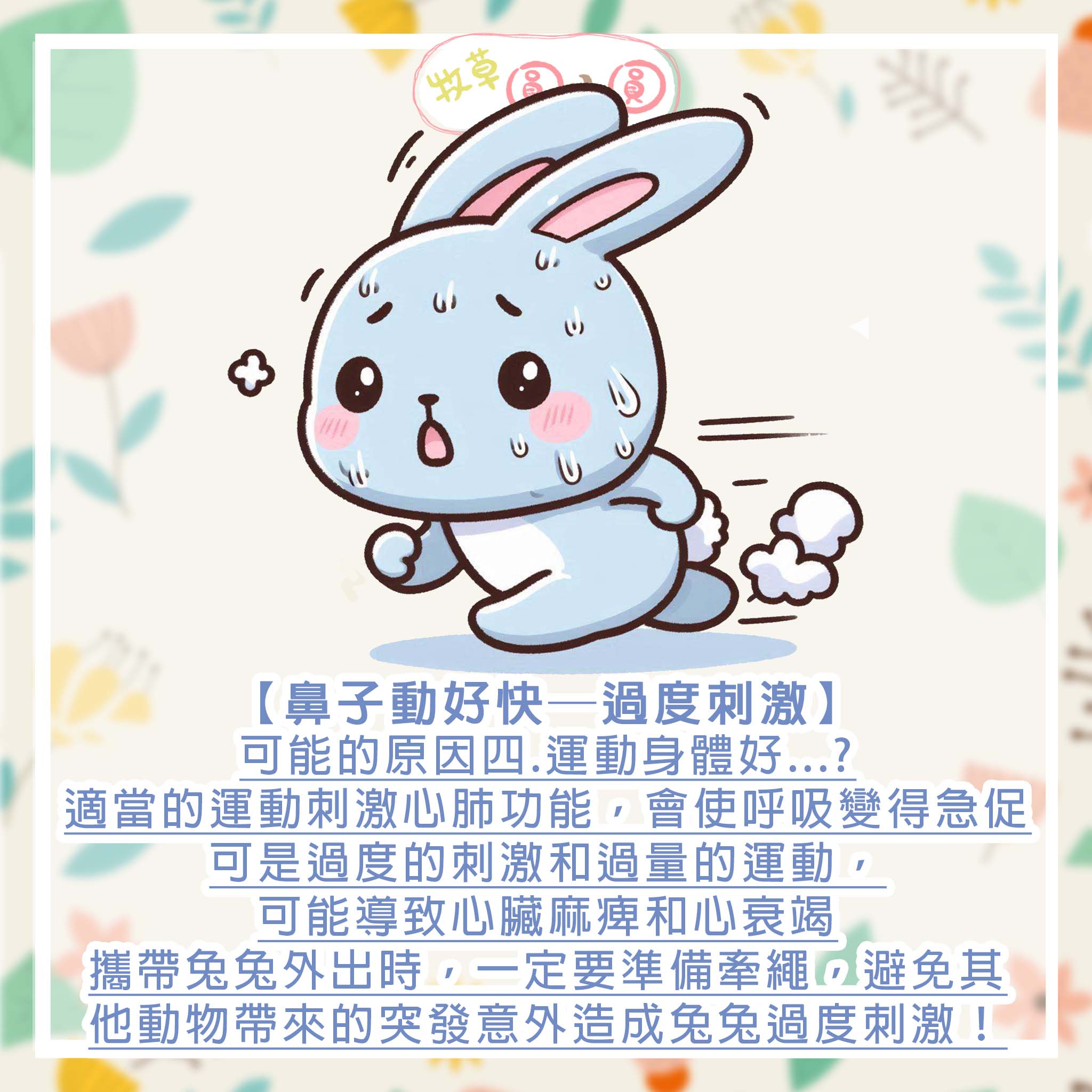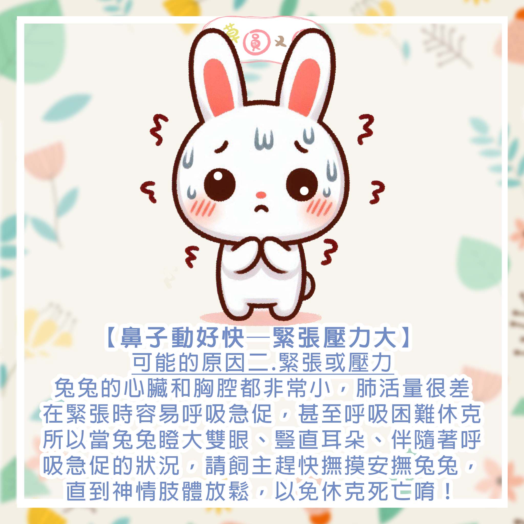 兔兔的呼吸頻率是很有節奏的,當察覺兔兔鼻頭快速上下移動時,可能有幾個原因: